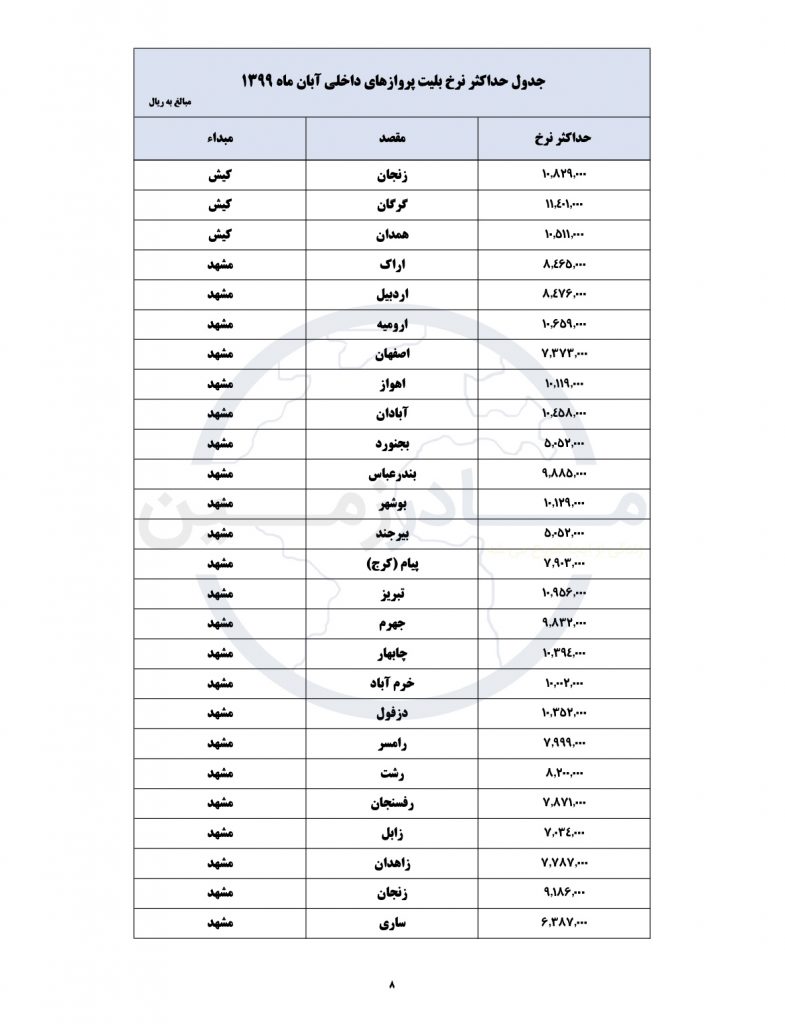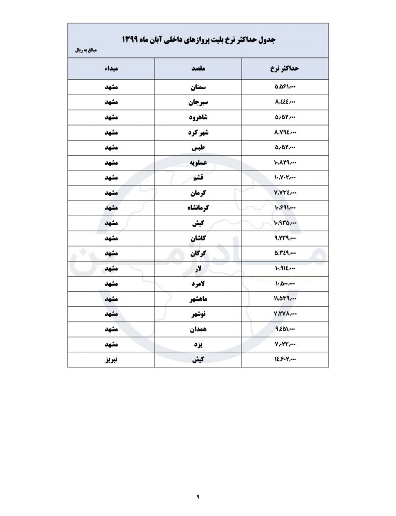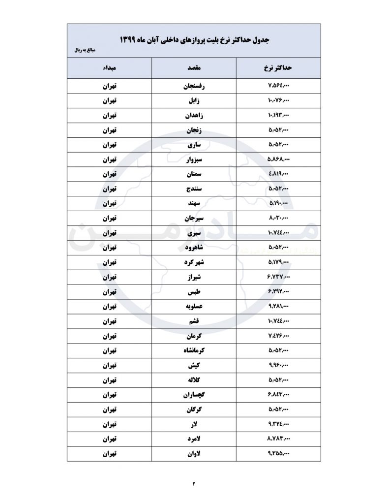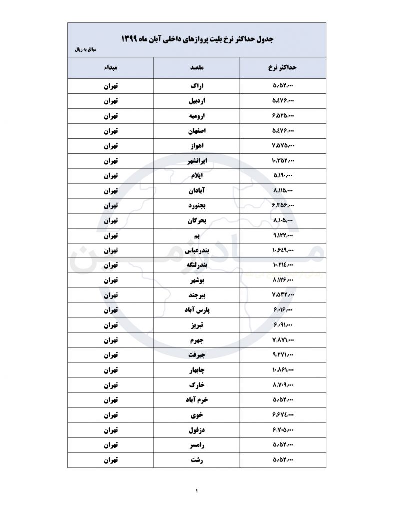 لیست جدید قیمت های هواپیمایی کشور امروز منتشر شد