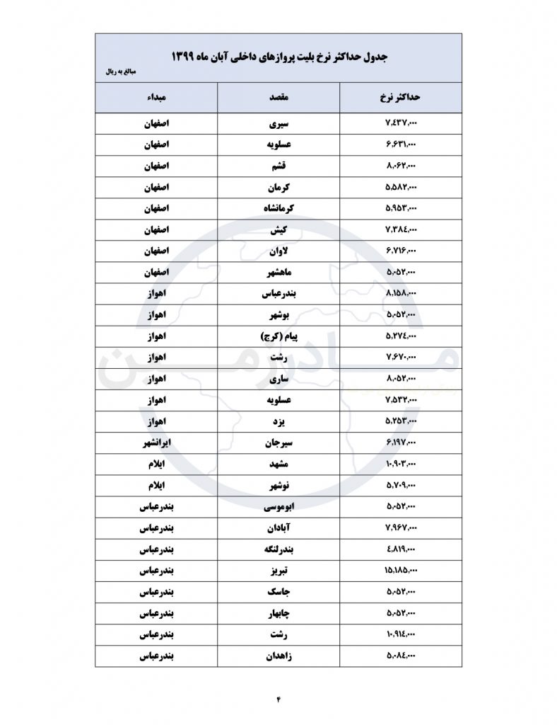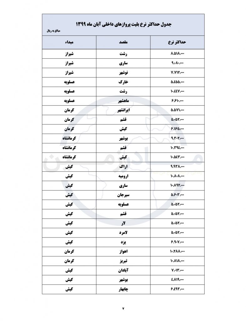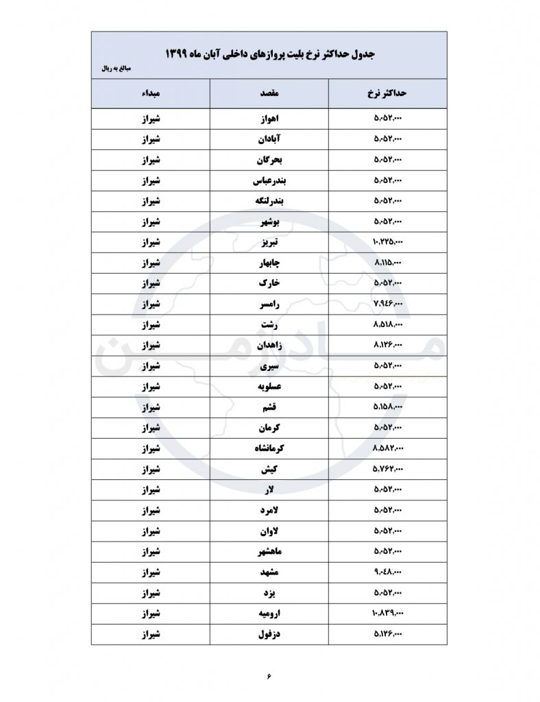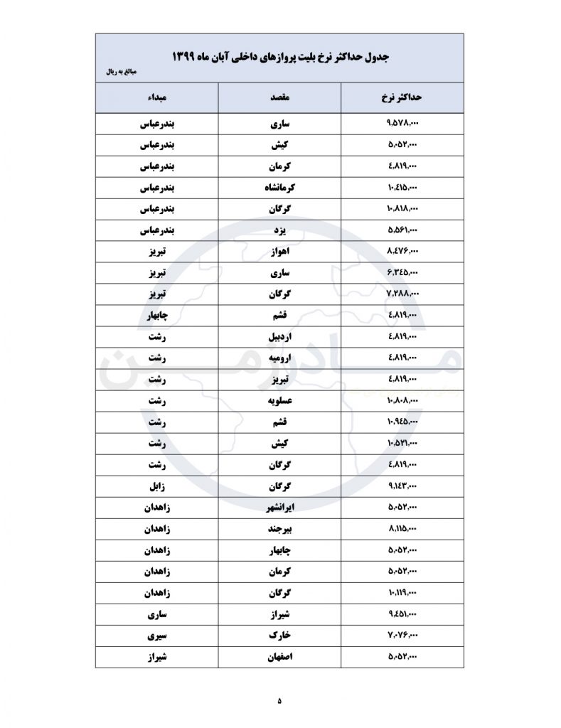 لیست جدید قیمت های هواپیمایی کشور امروز منتشر شد